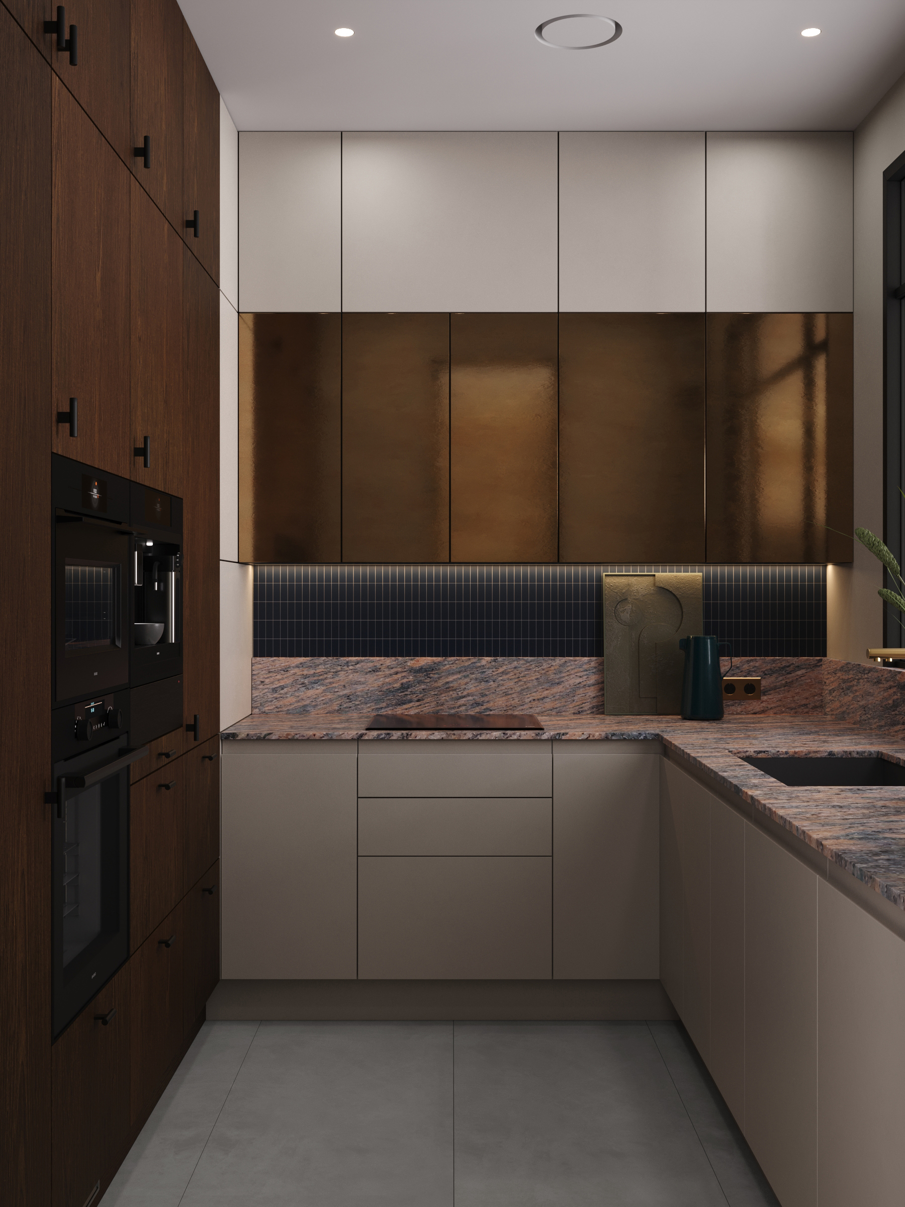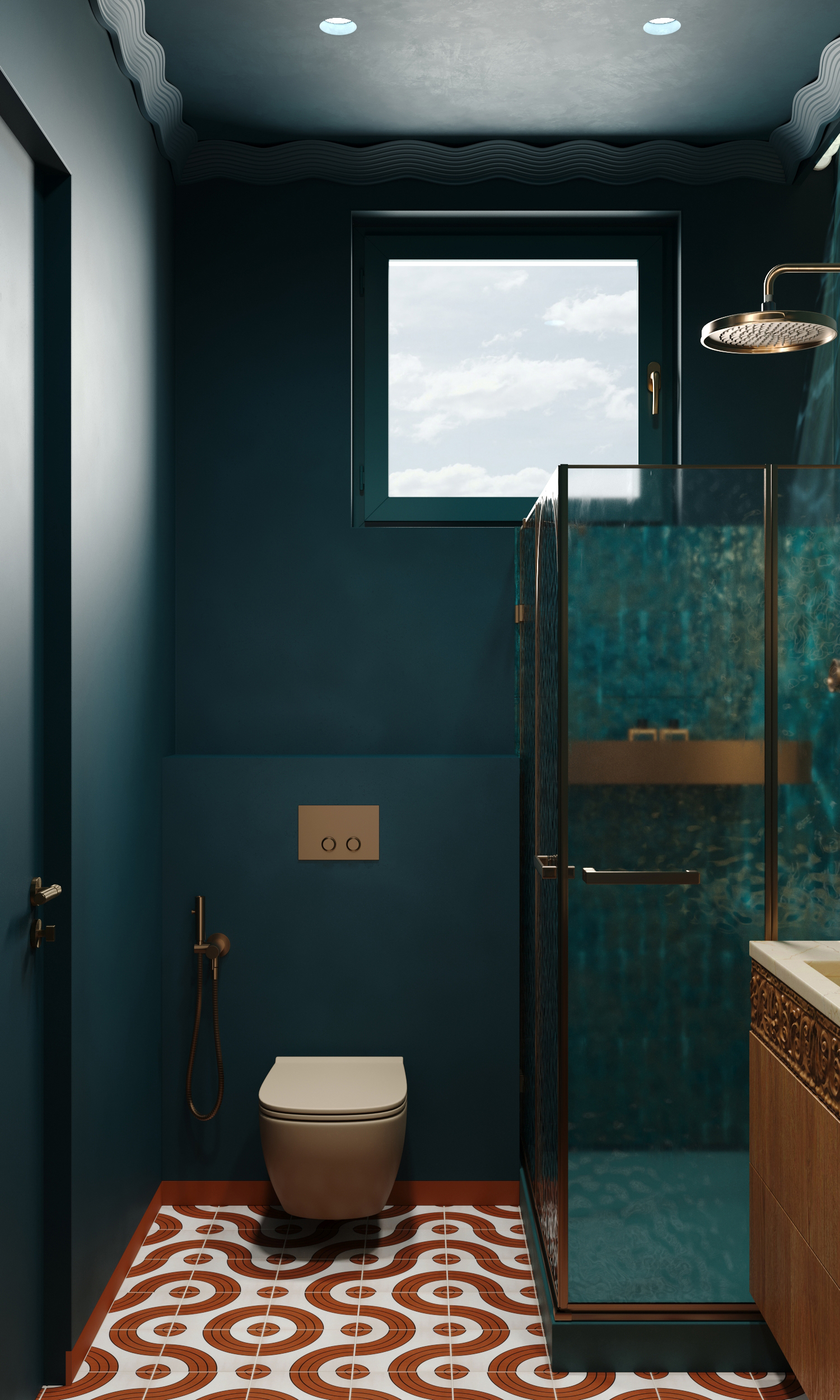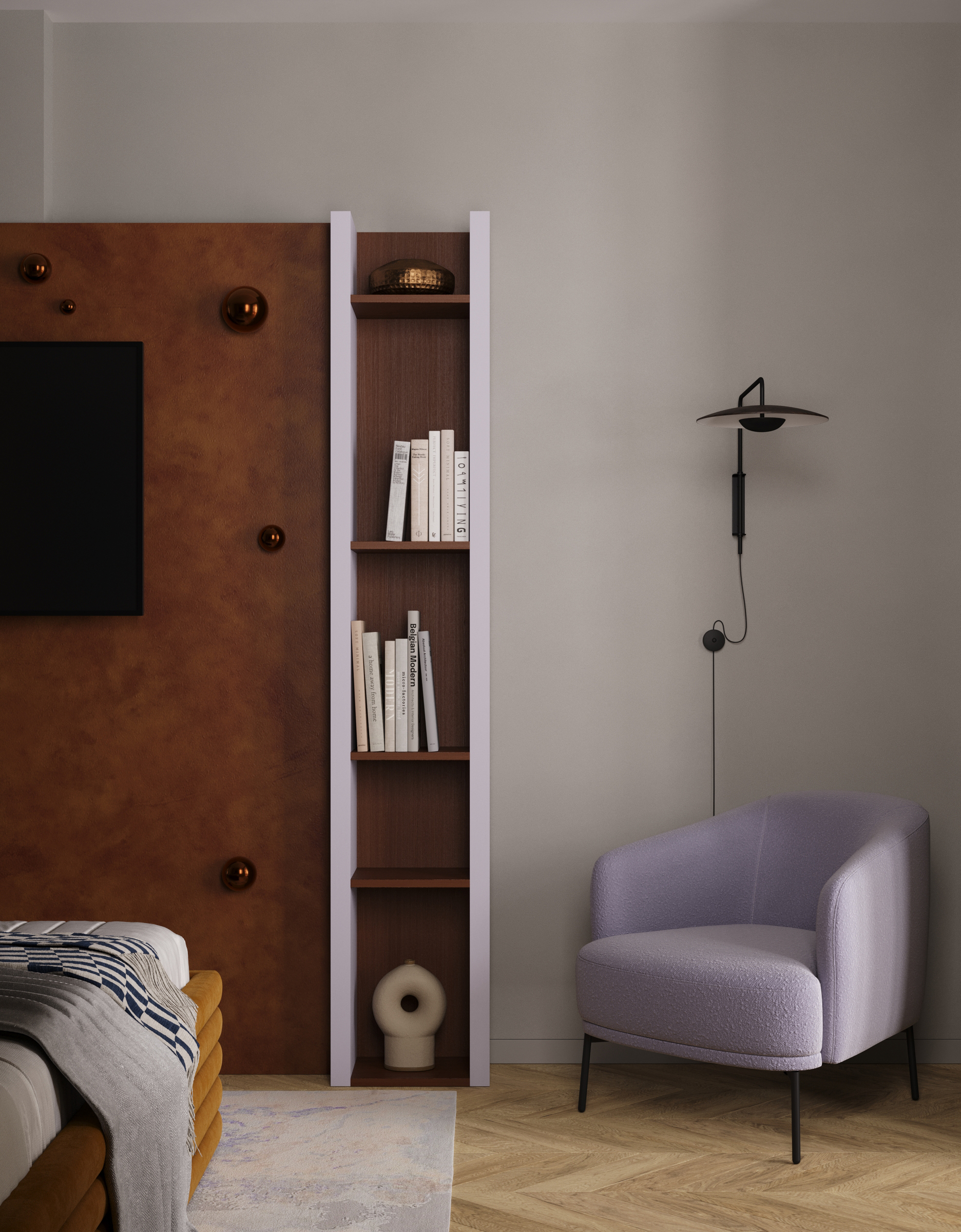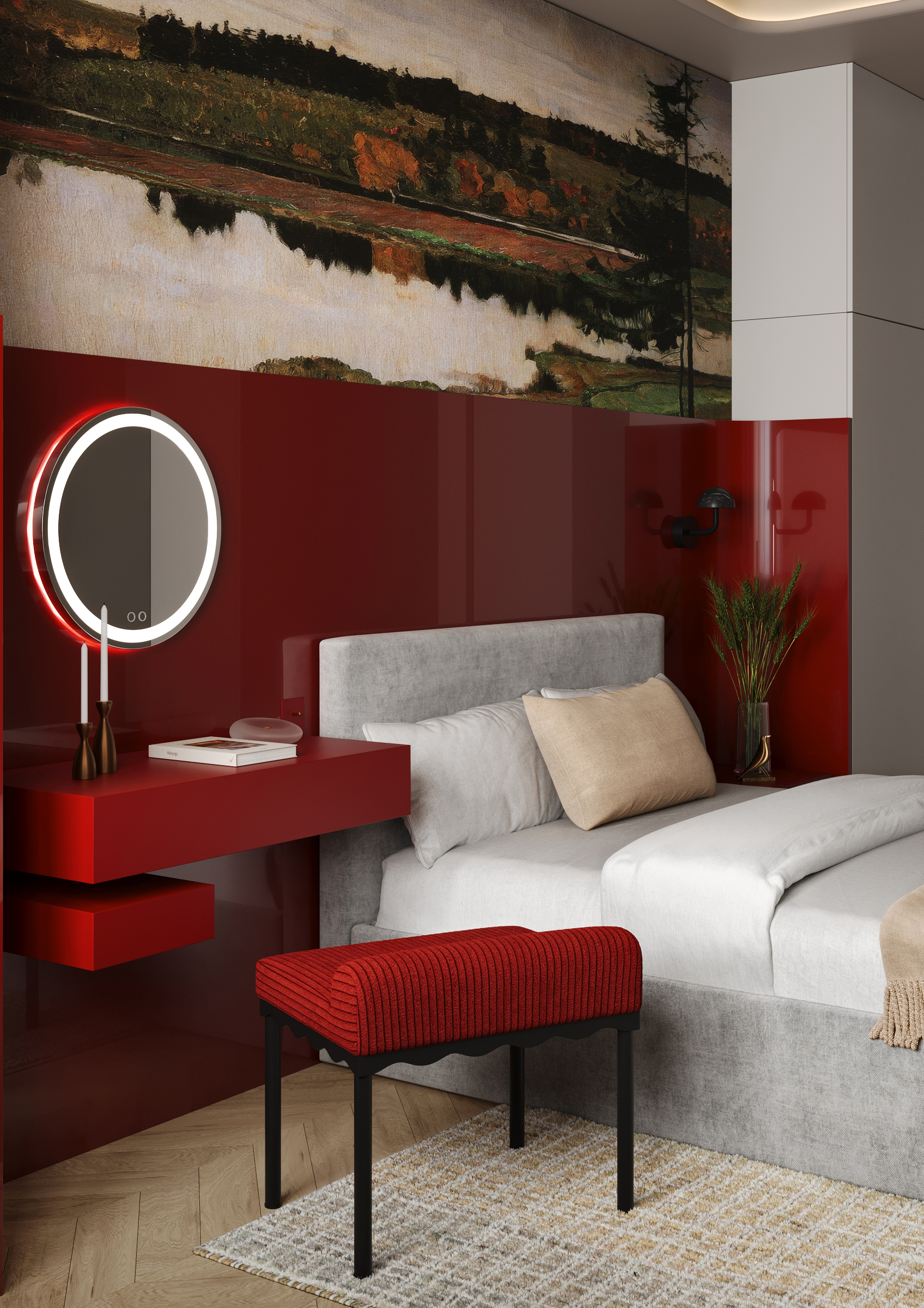 Мы сознательно пошли на взлом стереотипа о плавности перетекания палитры в квартире, чтобы сделать ее многообразной и персонализированной, как лесной пейзаж.