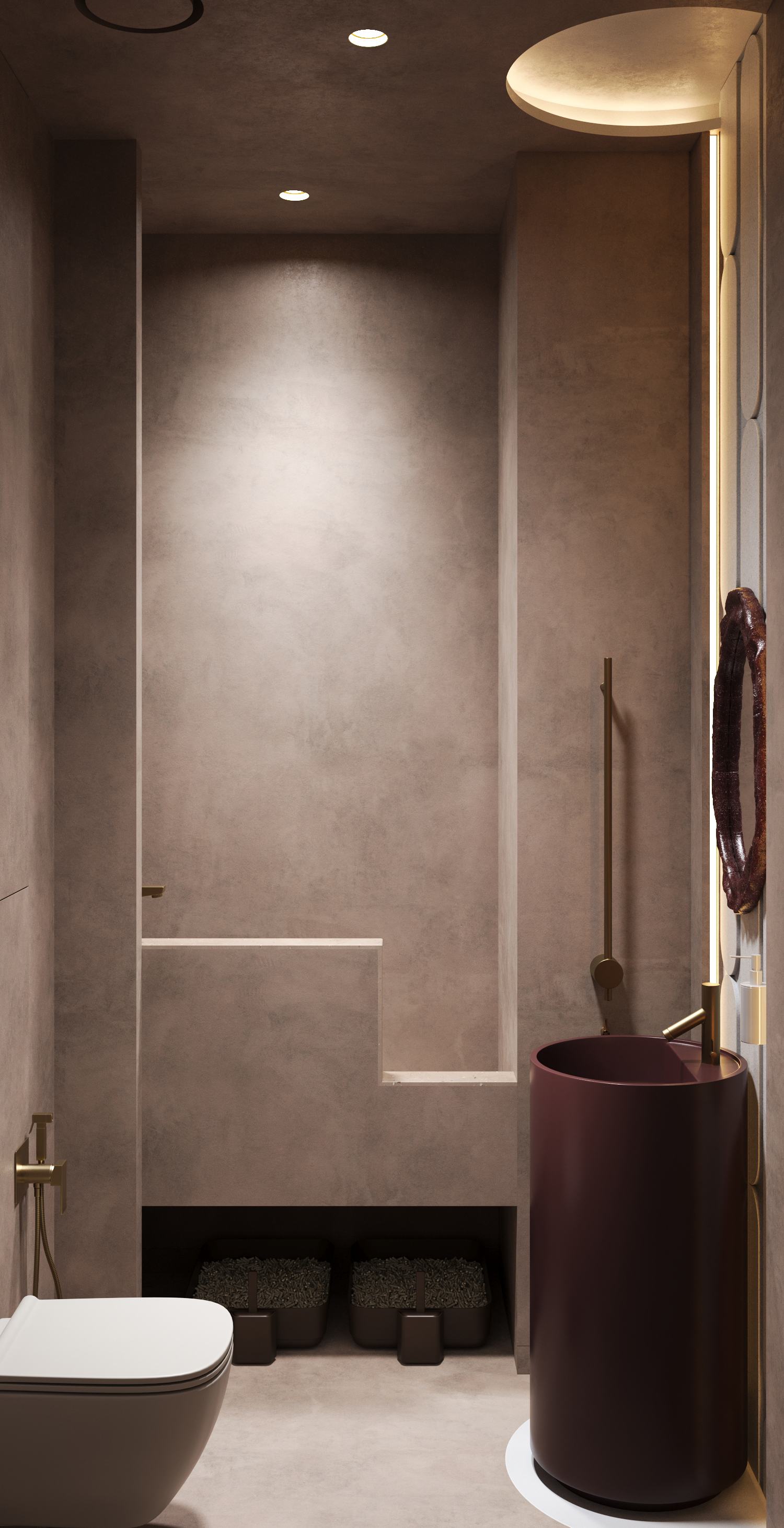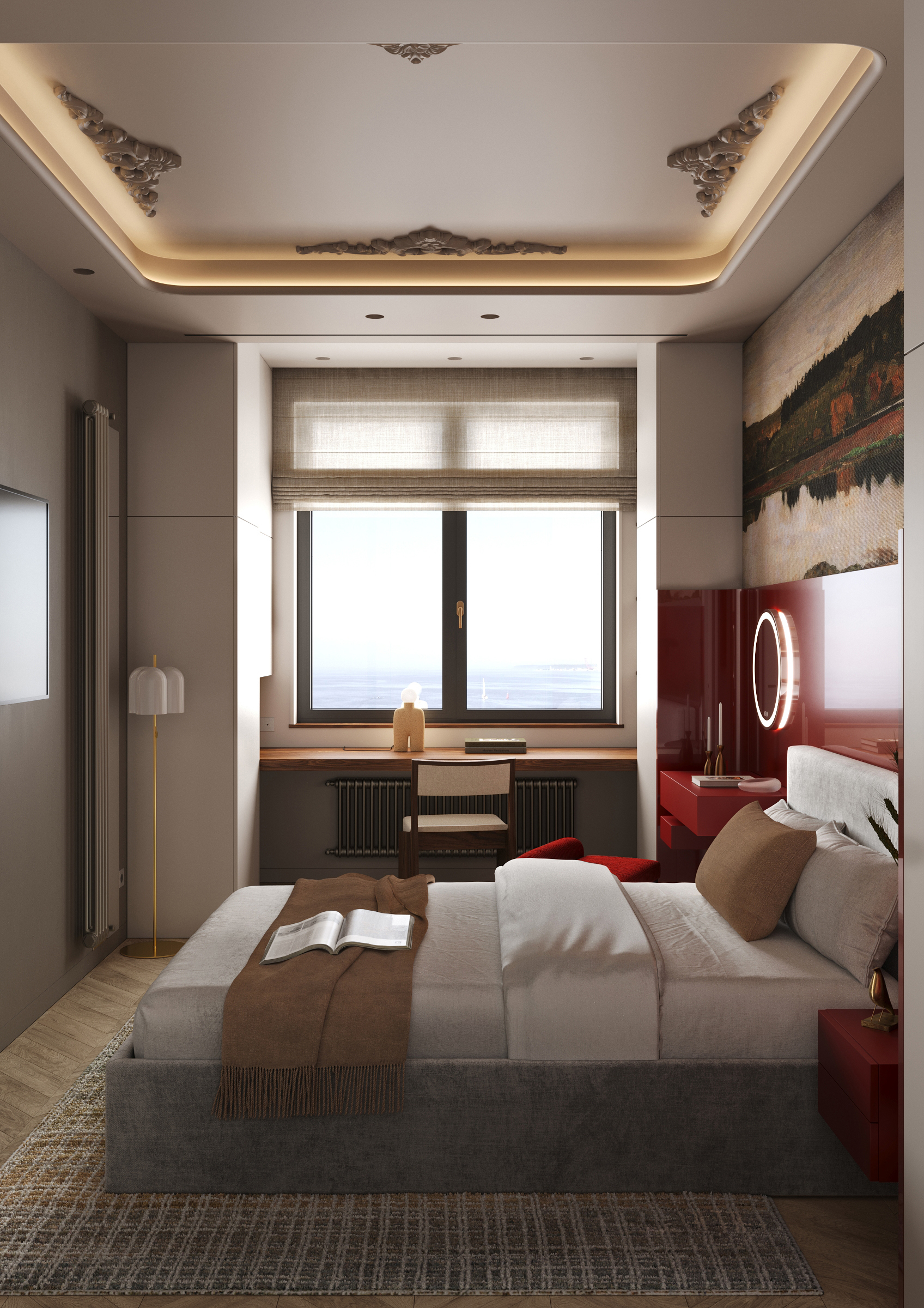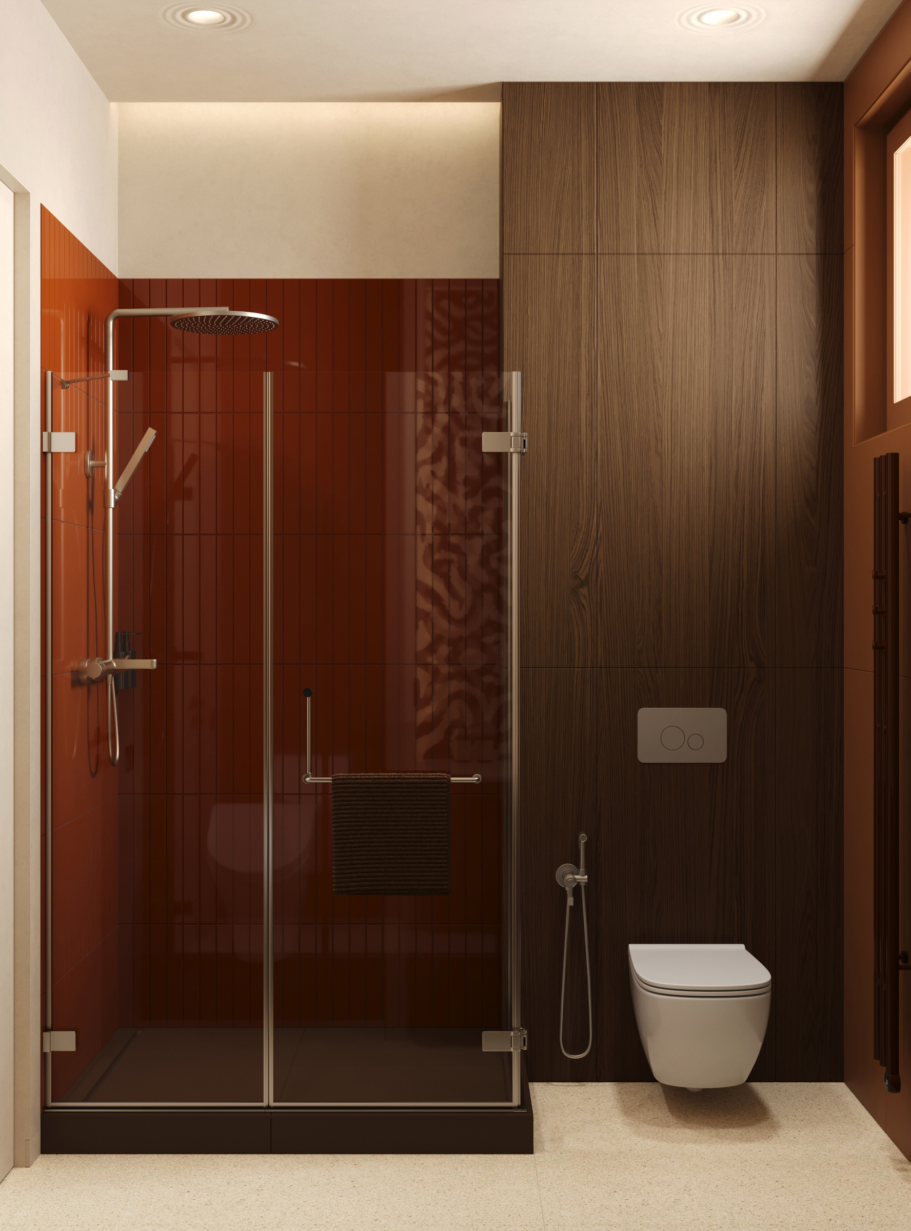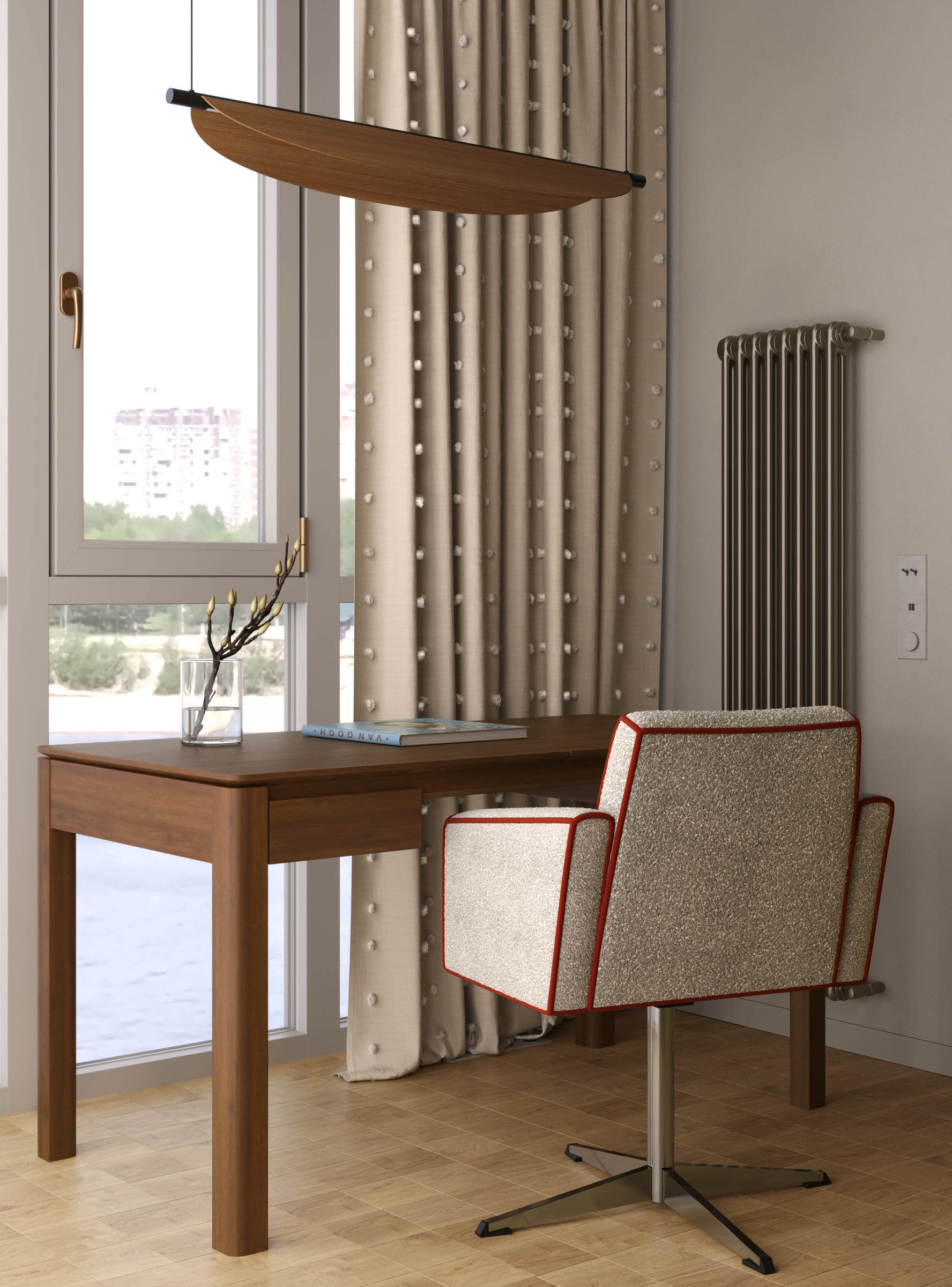 Мы сознательно пошли на взлом стереотипа о плавности перетекания палитры в квартире, чтобы сделать ее многообразной и персонализированной, как лесной пейзаж.