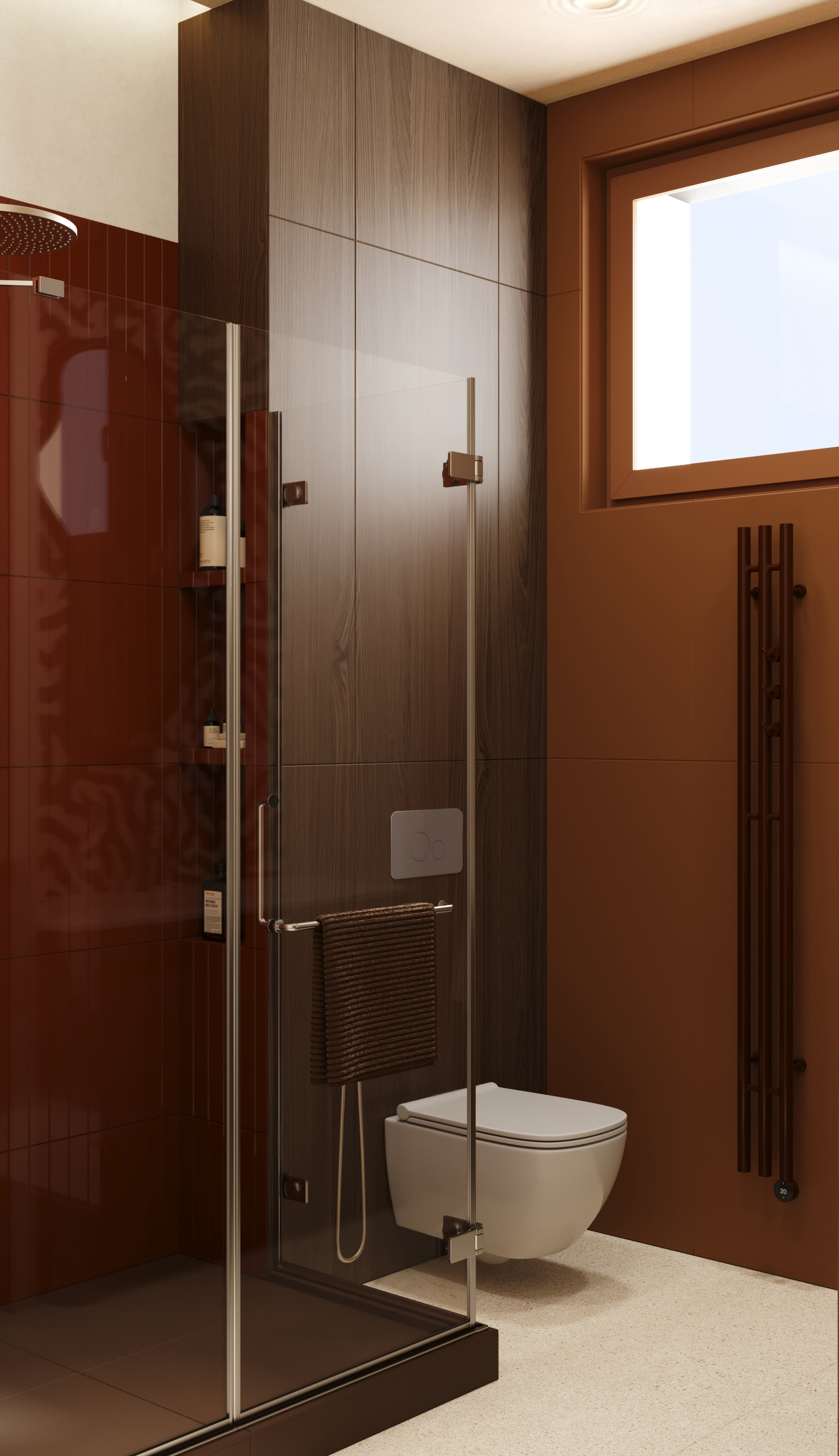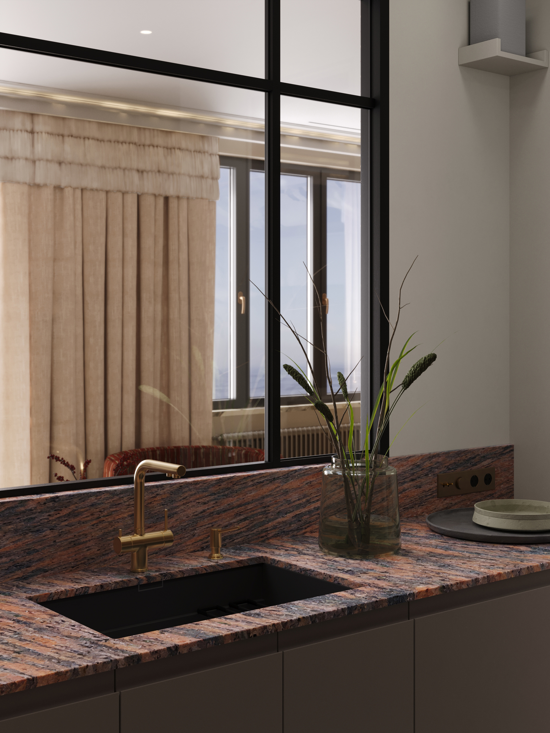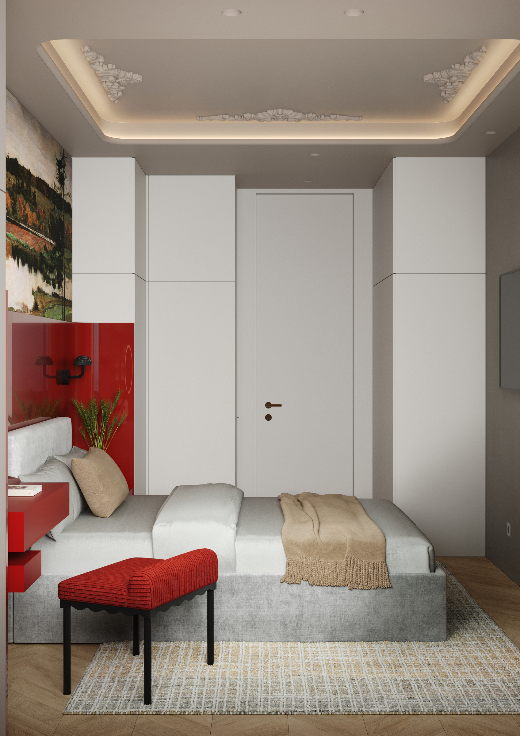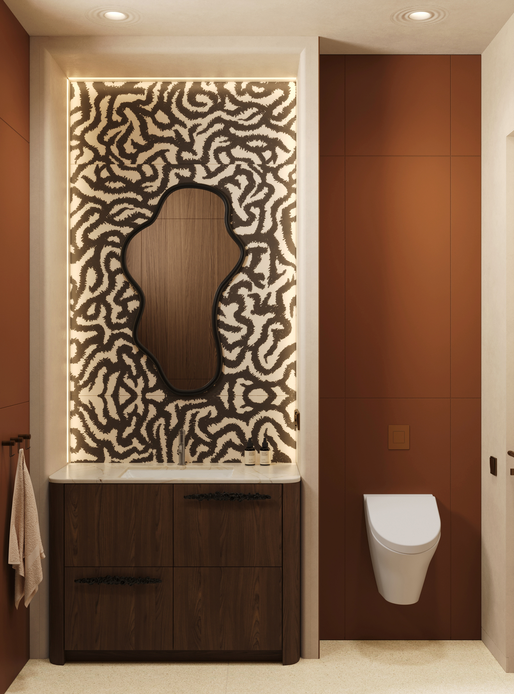 Мы сознательно пошли на взлом стереотипа о плавности перетекания палитры в квартире, чтобы сделать ее многообразной и персонализированной, как лесной пейзаж.