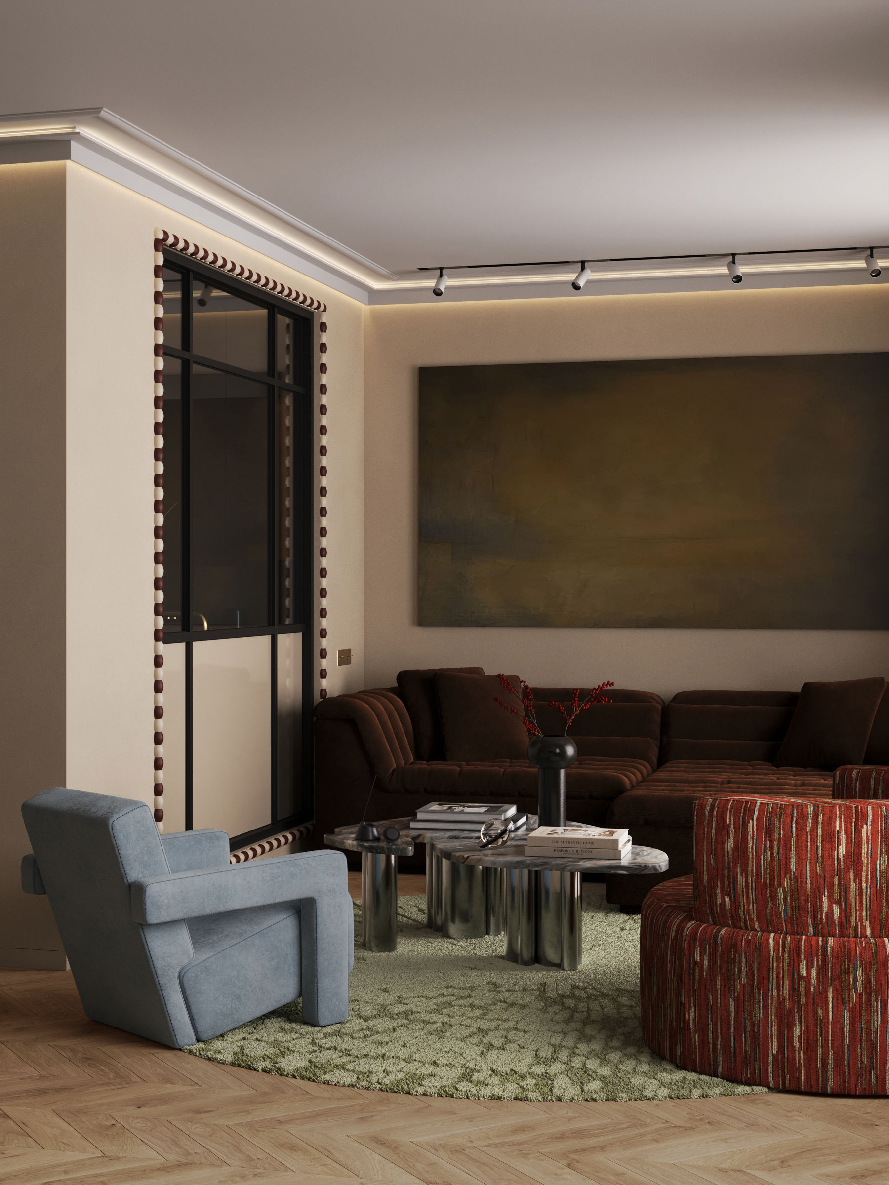 Квартира для семейной пары с детьми, расположенная в жилом комплексе ЖК "Riviera Club" на берегу Финского залива, Санкт-Петербург, 146 м². Пространство создано как место для жизни большой семьи.